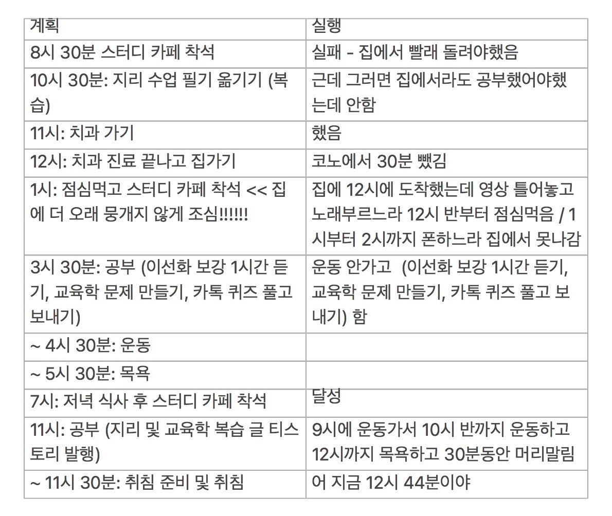 오늘 계획 및 실행